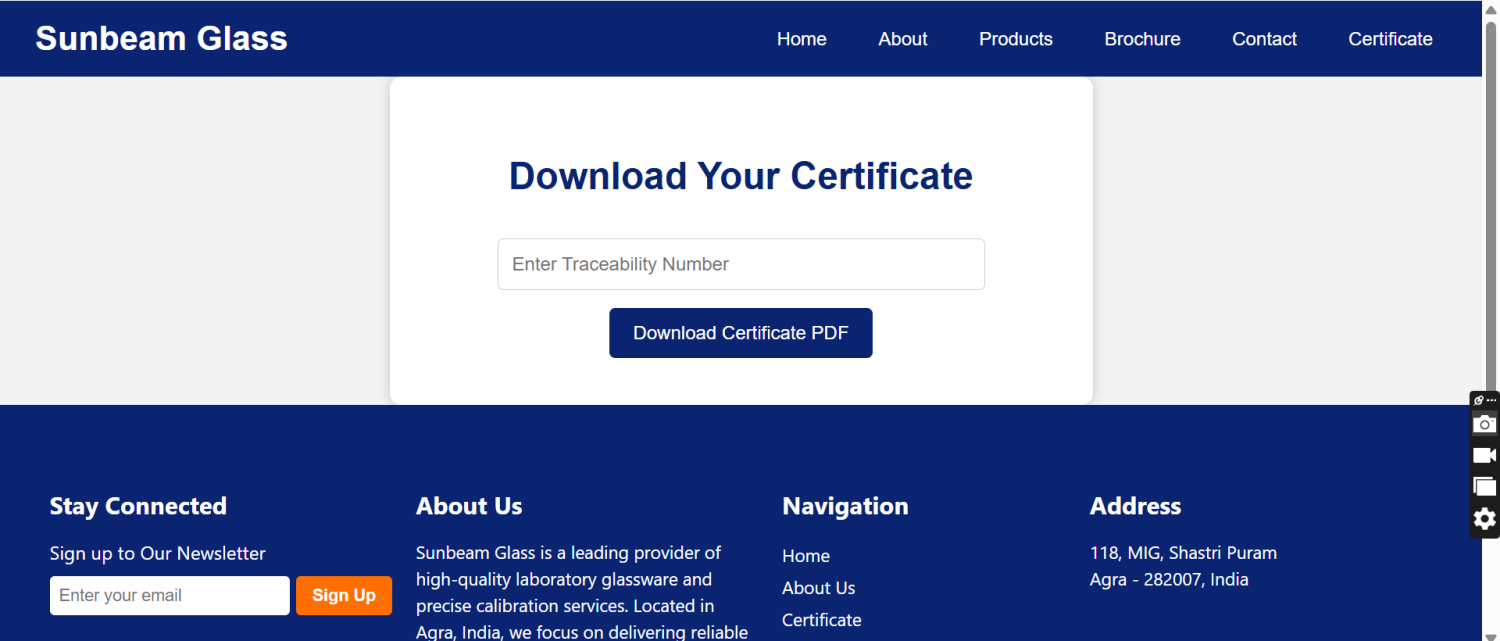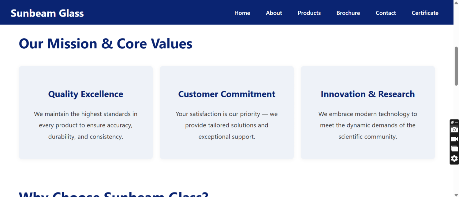A professional website that reflects the true quality of Sunbeam Glass products.