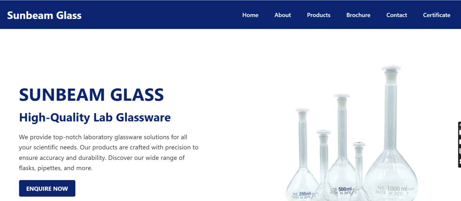 Sunbeam Glass is a leading manufacturer and supplier of high-quality laboratory glassware. With a strong reputation in the scientific and research industry, they specialize in precision-crafted products like flasks, pipettes, beakers, and other laboratory essentials.